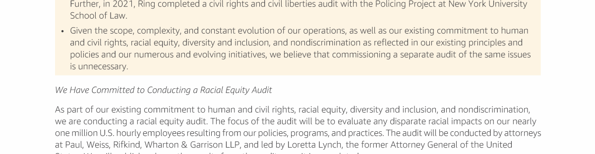 Item 18 - Shareholder Proposal Requesting a Diversity and Equity Audit