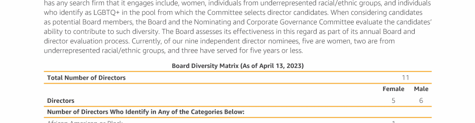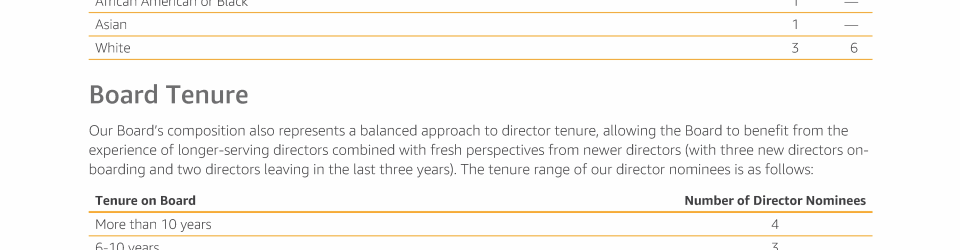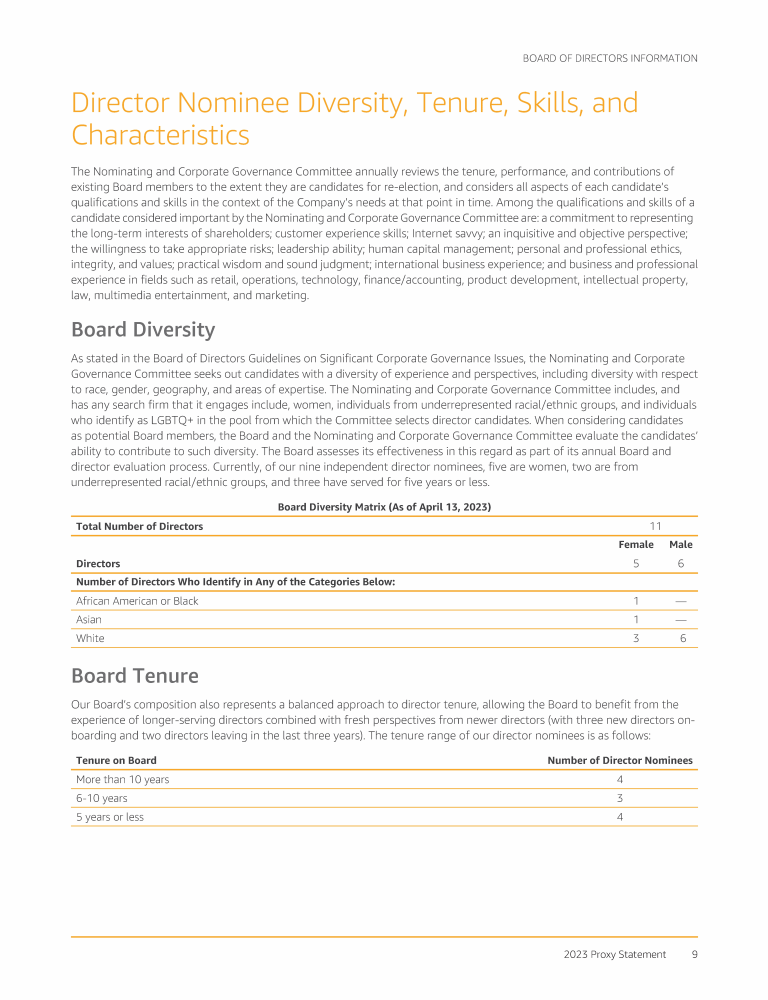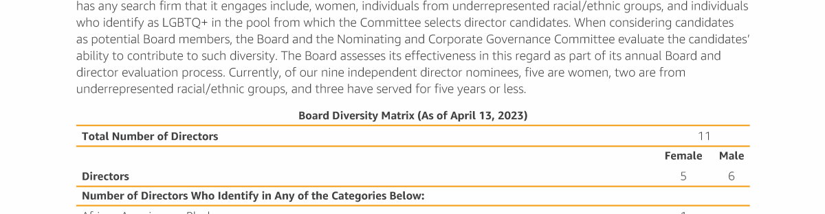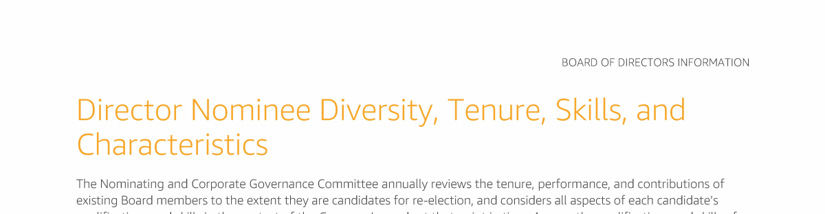 - Director Nominee Diversity, Tenure, Skills, and Characteristics