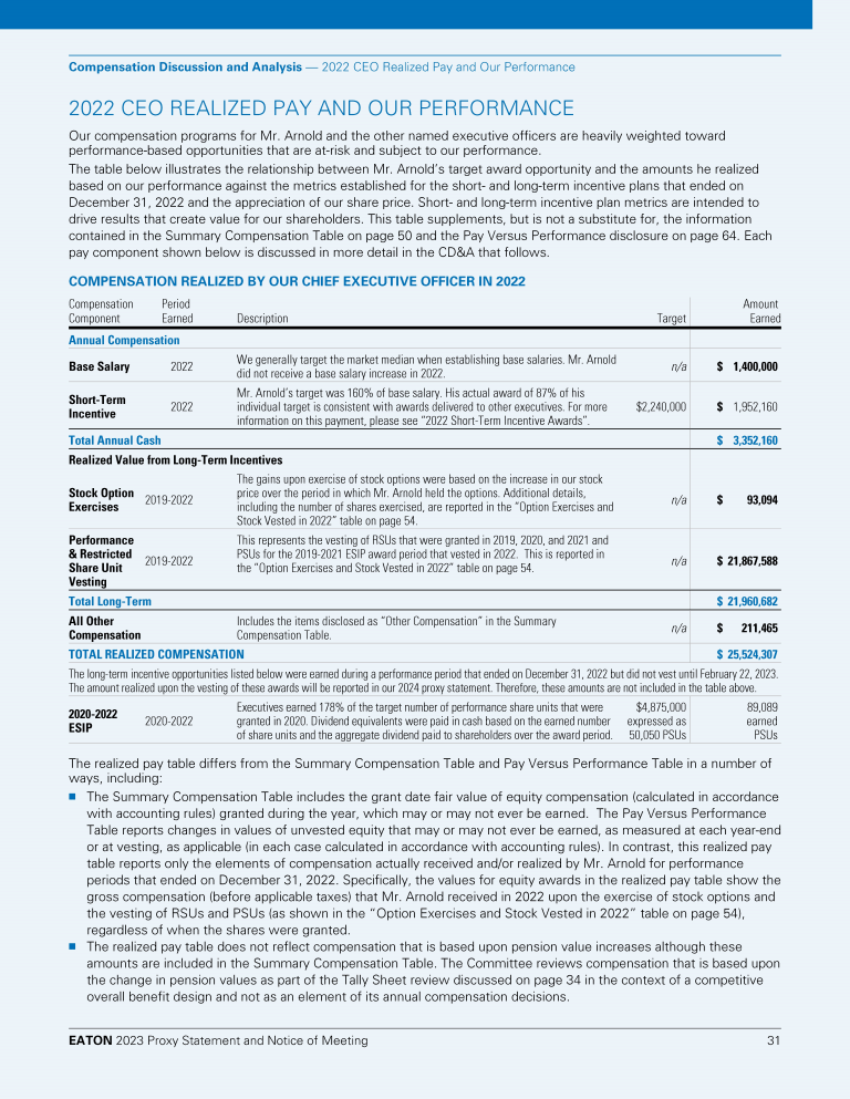 - 2022 CEO Realized Pay and Our Performance
