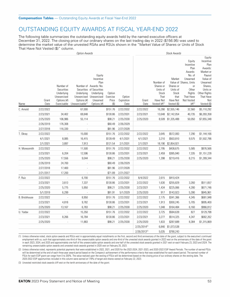Compensation Tables