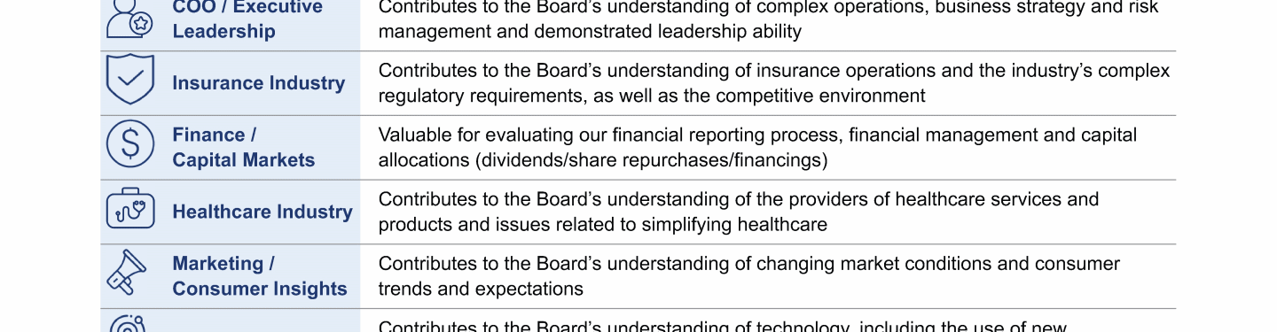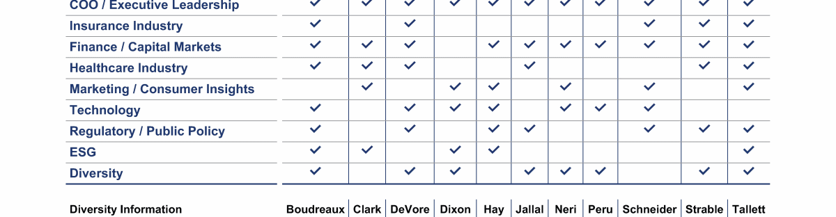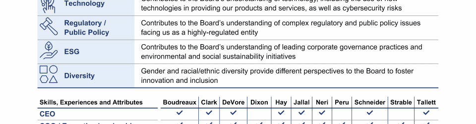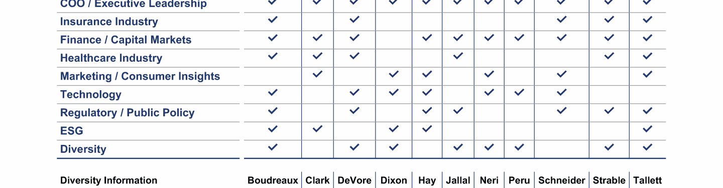 Review our directors' biographies, skills/qualifications, committees, and more in our interactive
