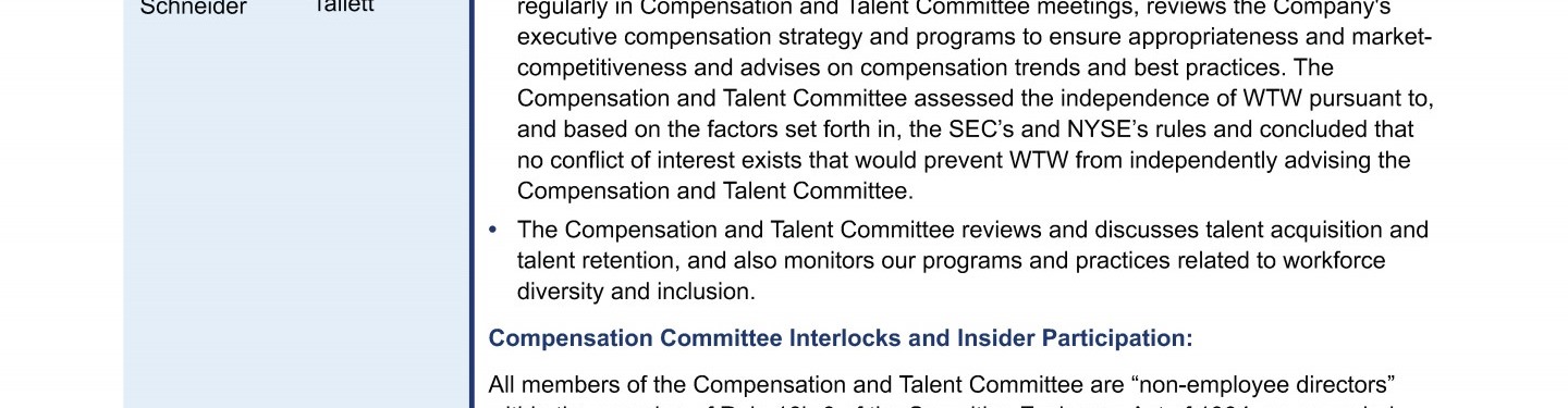 Compensation and Talent Committee Report
