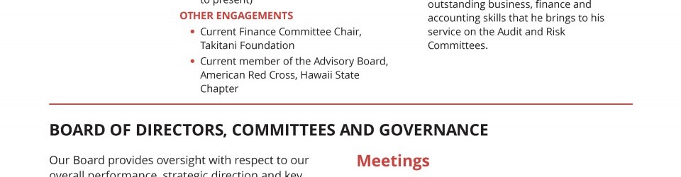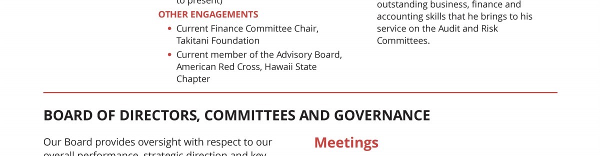 Board of Directors, Committees and Governance