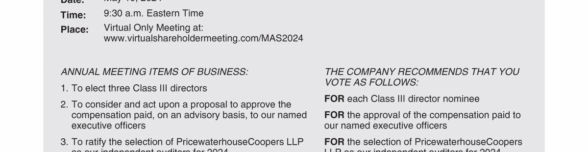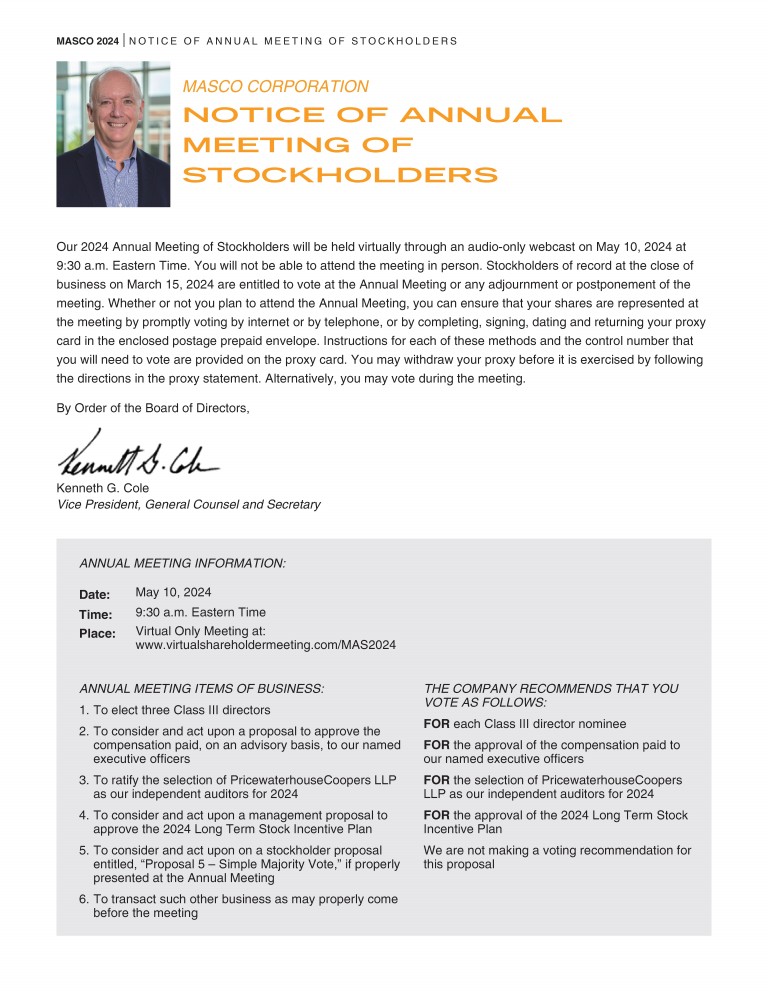 Proposal 4: Approval of Our Masco Corporation 2024 Long Term Stock Incentive Plan