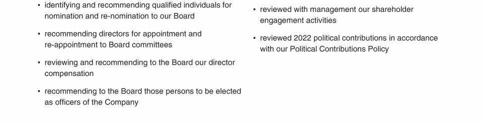 Review our director nominees' biographies, skills/qualifications, committees, and more in our interactive