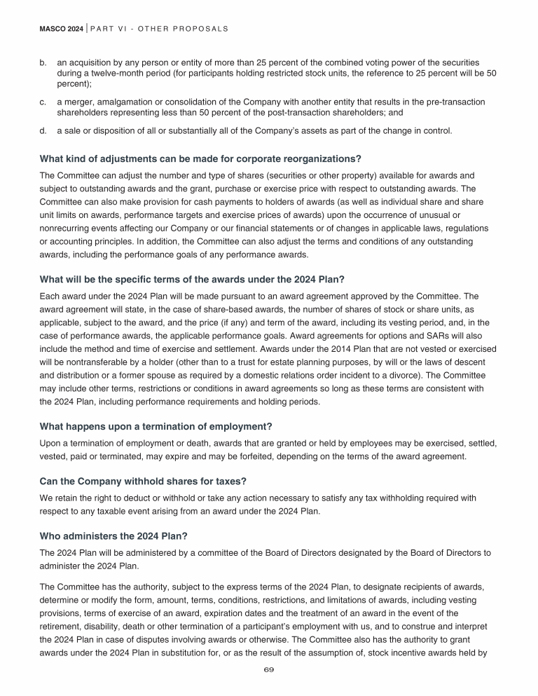 Proposal 4: Approval of Our Masco Corporation 2024 Long Term Stock Incentive Plan
