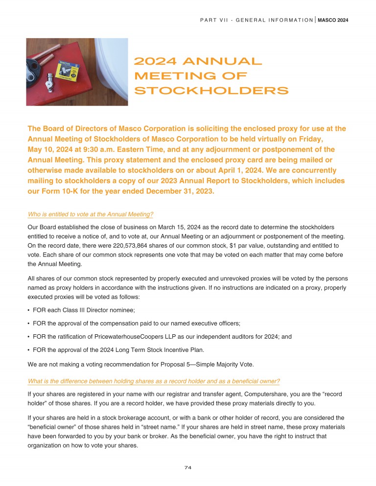 Proposal 4: Approval of Our Masco Corporation 2024 Long Term Stock Incentive Plan