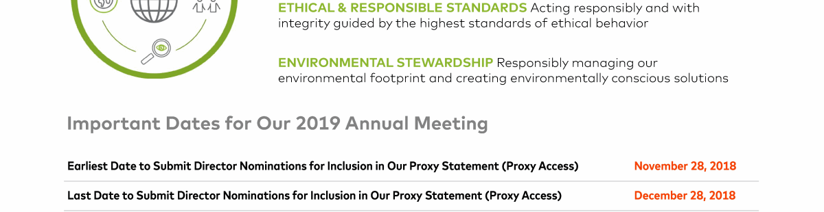 Important Information and Dates Related to the 2019 Annual Meeting