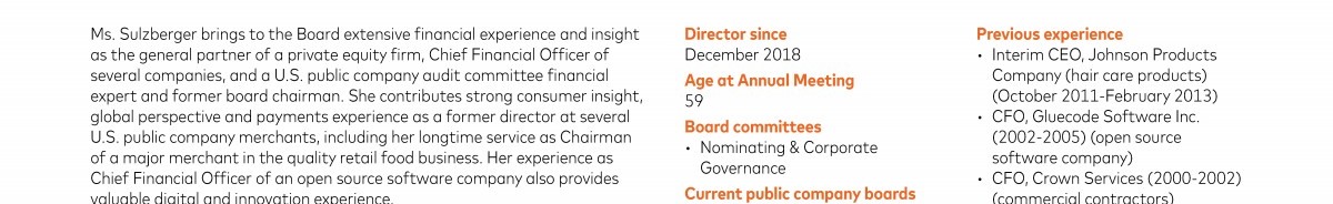 Review our director nominees' biographies, skills/qualifications, committees, and more in our interactive