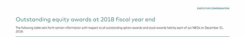 Outstanding Equity Awards at 2018 Fiscal Year End