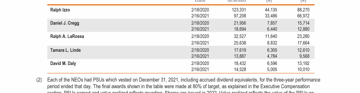- 2021 Grants of Plan-Based Awards Table