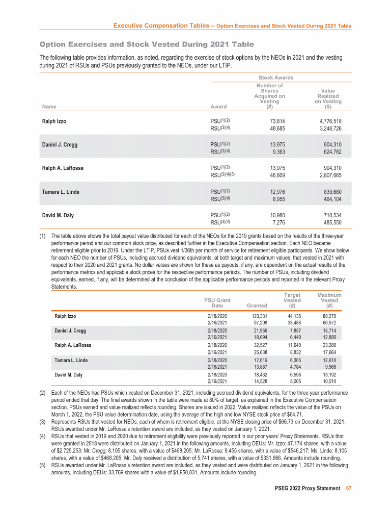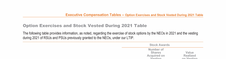 - Option Exercises and Stock Vested During 2021 Table