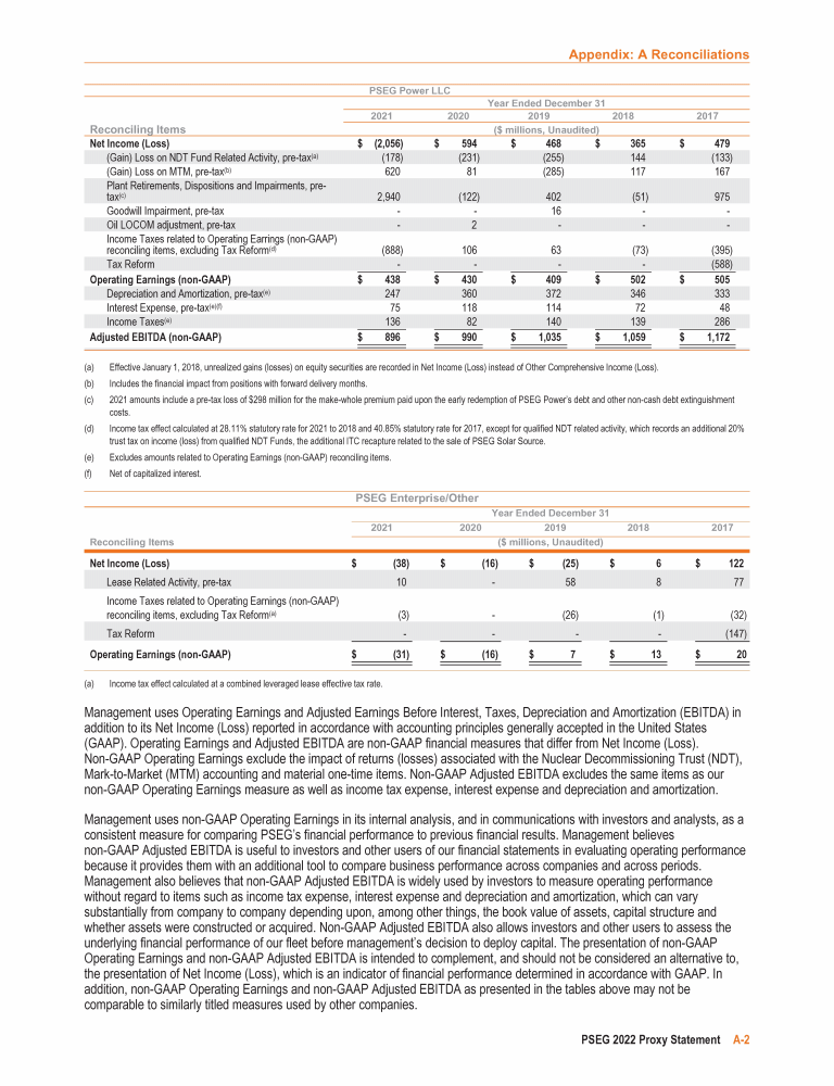 Appendix A: Operating Earnings (Non-GAAP) and Adjusted EBITDA (Non-GAAP) Reconciliations