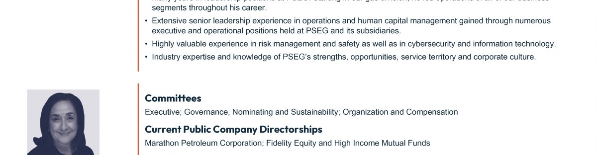 Review our director nominees' biographies, skills/qualifications, committees, and more in our interactive