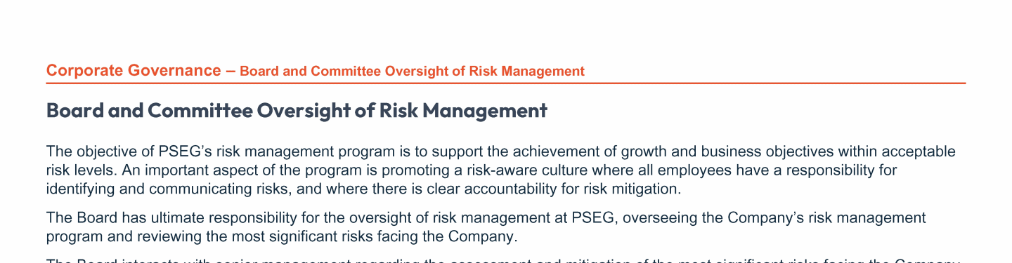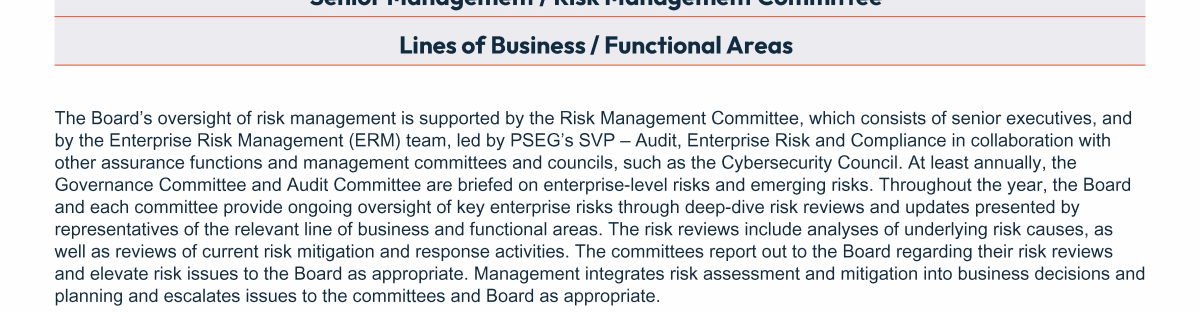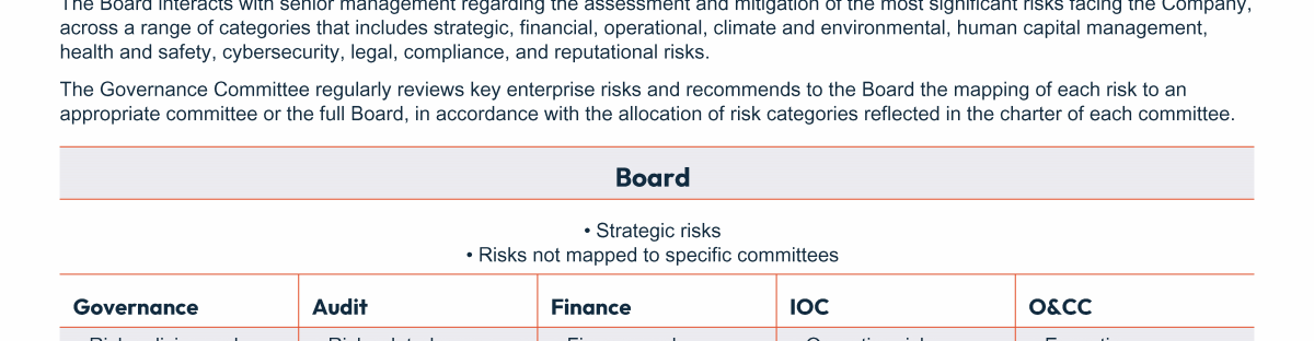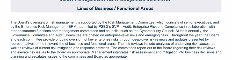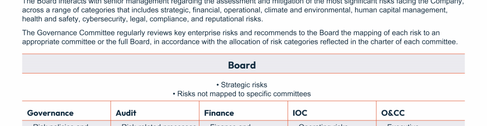 - Board and Committee Oversight of Risk Management