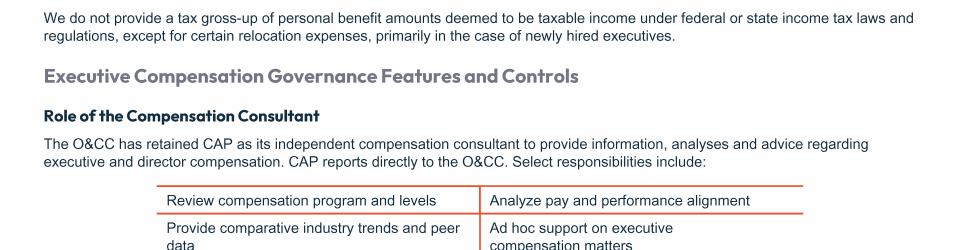 - Executive Compensation Governance Features and Controls