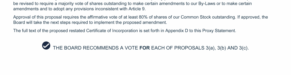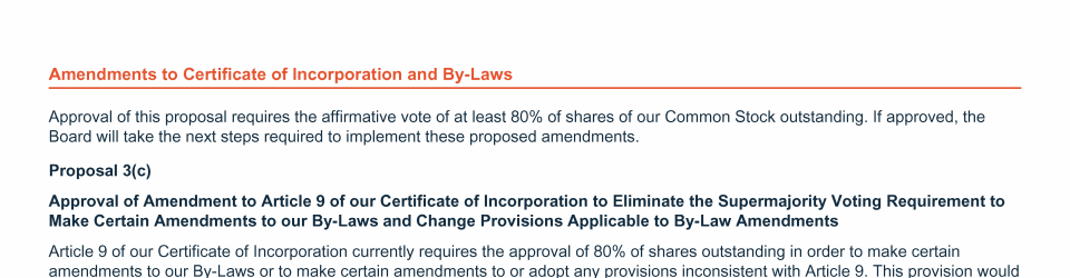 Proposal 3: Amendments to Certificate of Incorporation and By-Laws