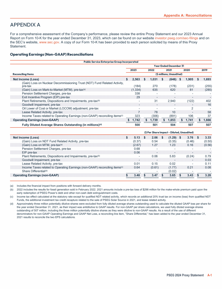 Appendix A: Operating Earnings (Non-GAAP) Reconciliations