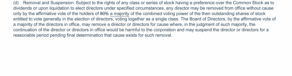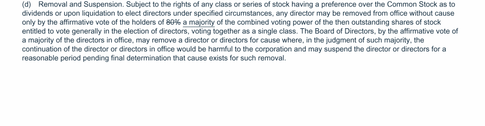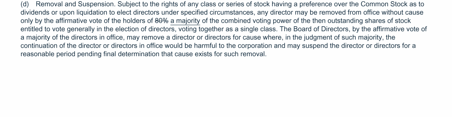 Proposal 3: Amendments to Certificate of Incorporation and By-Laws