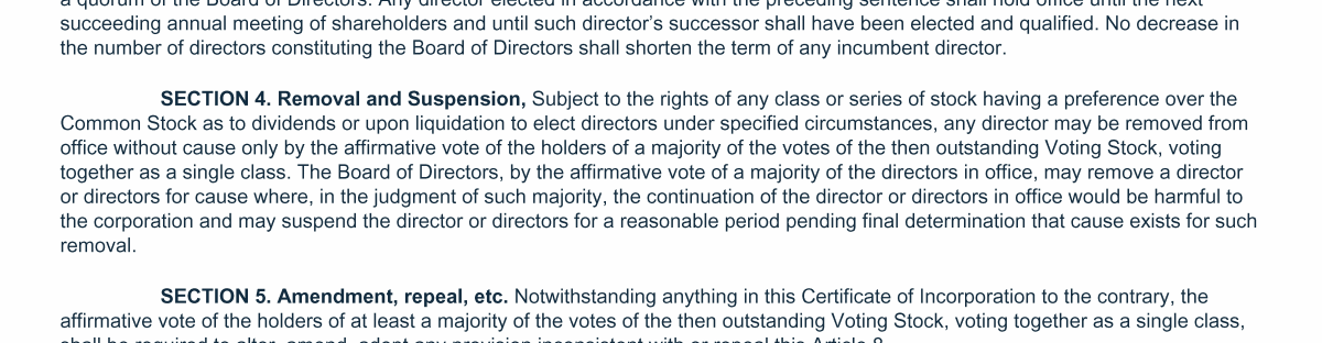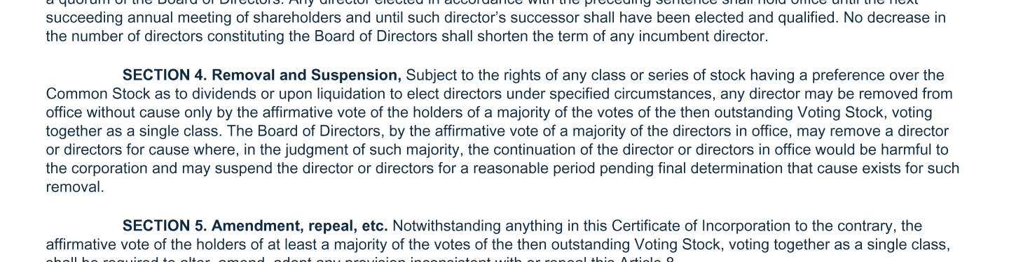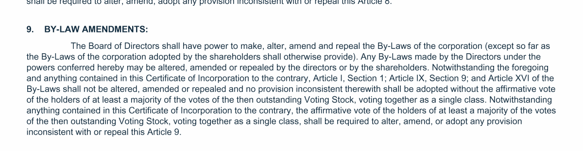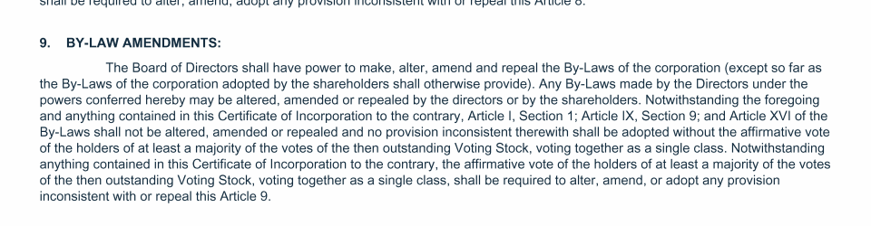 Proposal 3: Amendments to Certificate of Incorporation and By-Laws
