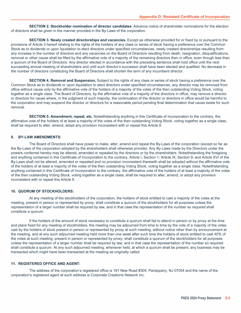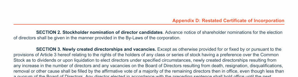 Appendix D: Restated Certificate of Incorporation