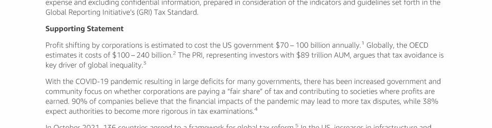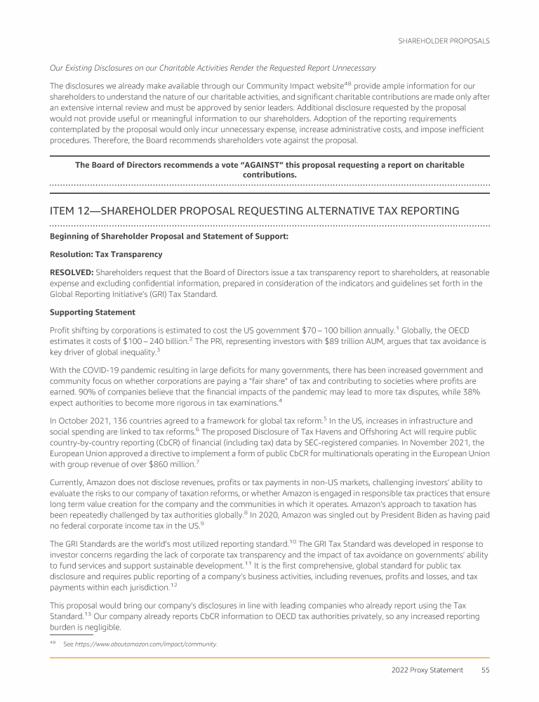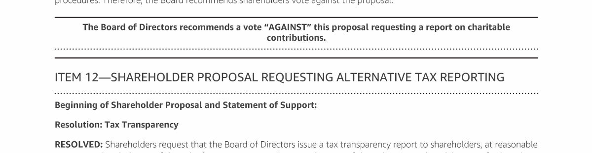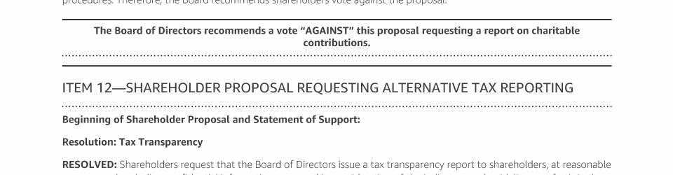 Item 12 - Shareholder Proposal Requesting Alternative Tax Reporting