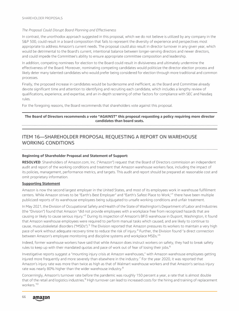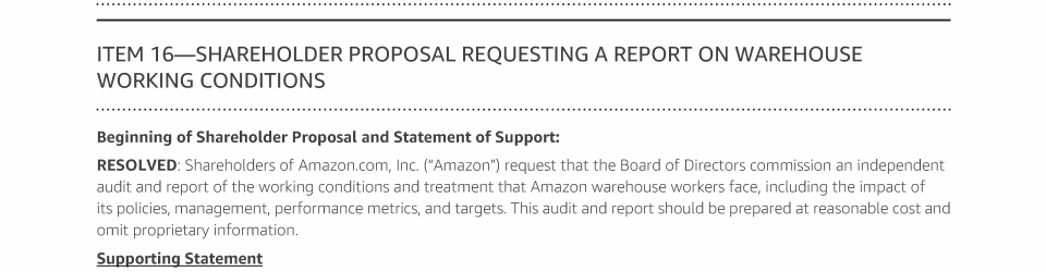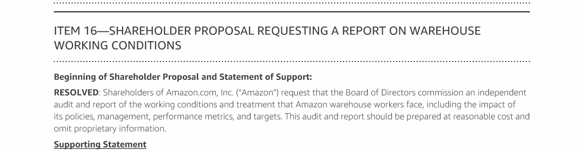 Item 16 - Shareholder Proposal Requesting a Report on Warehouse Working Conditions