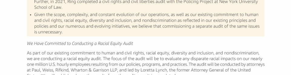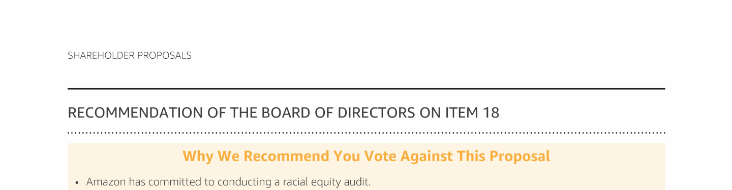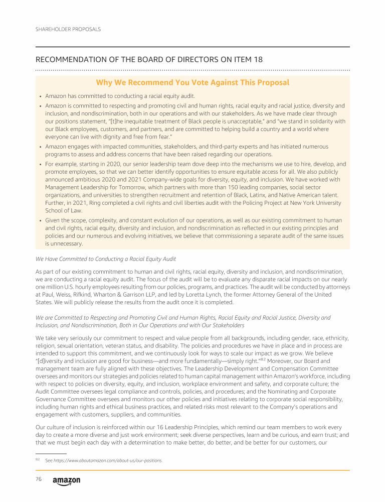 Item 18 - Shareholder Proposal Requesting a Diversity and Equity Audit