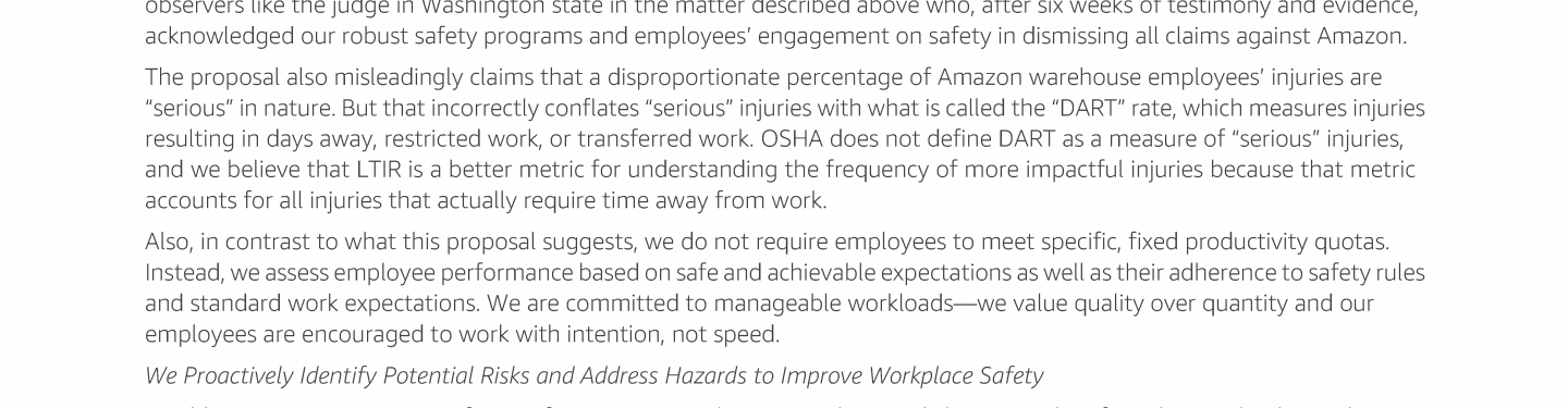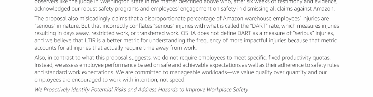 Item 10 - Shareholder Proposal Requesting a Report on Warehouse Working Conditions