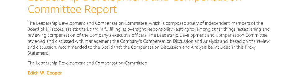 - Leadership Development and Compensation Committee Report