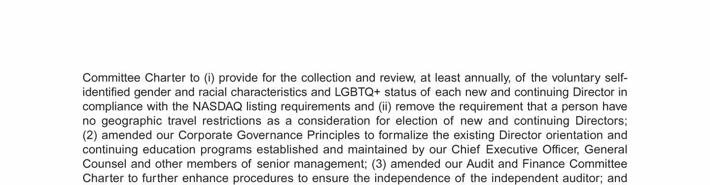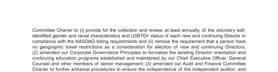 Corporate Governance, Board & Committee Matters