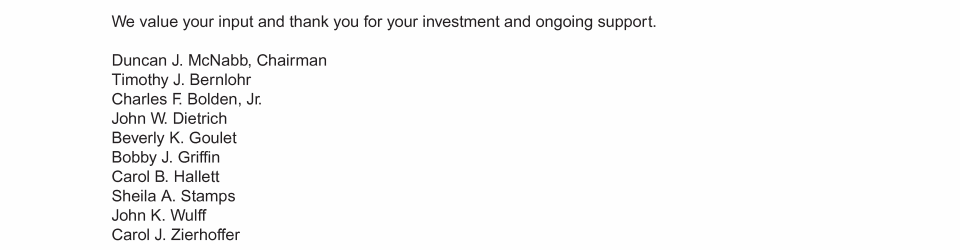 Letter to Our Shareholders from the Board of Directors