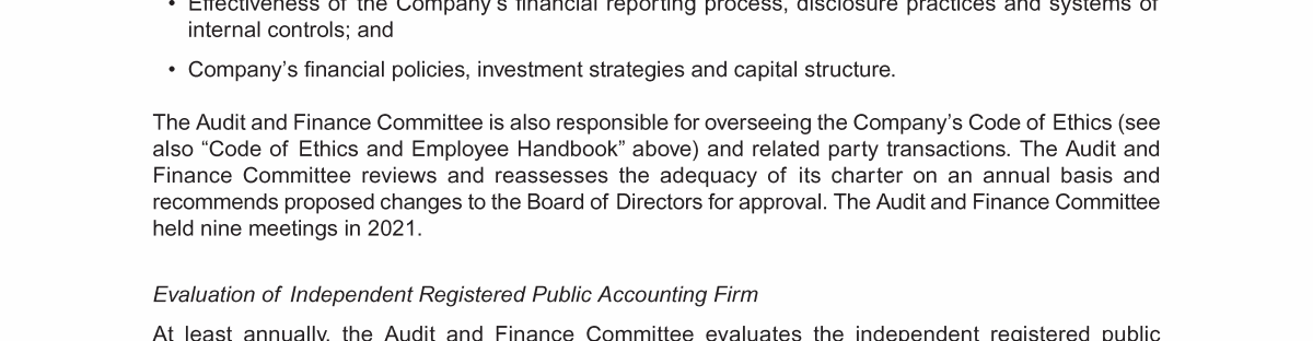 Audit and Finance Committee