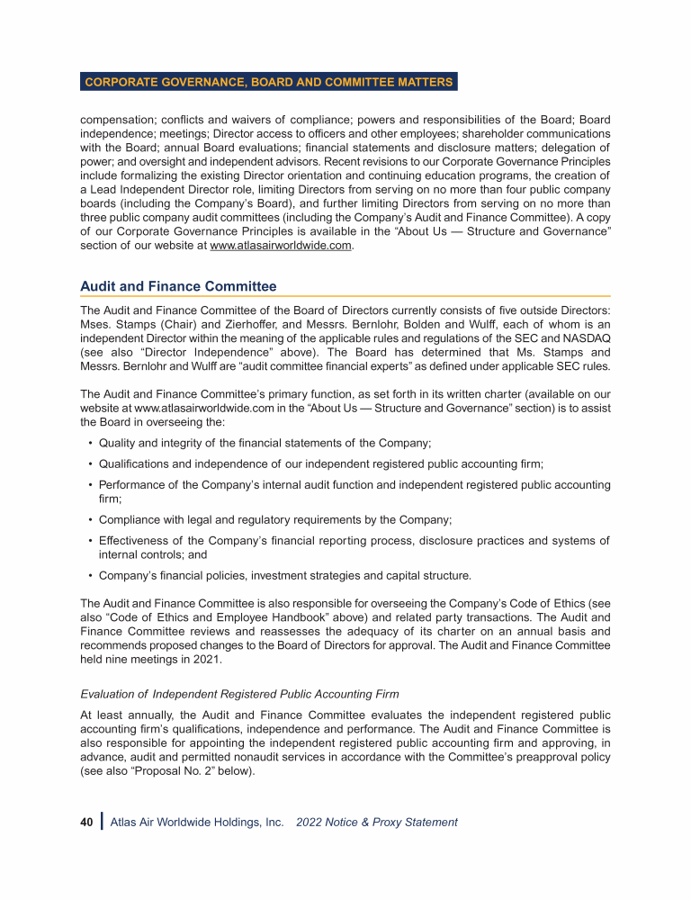Corporate Governance, Board & Committee Matters