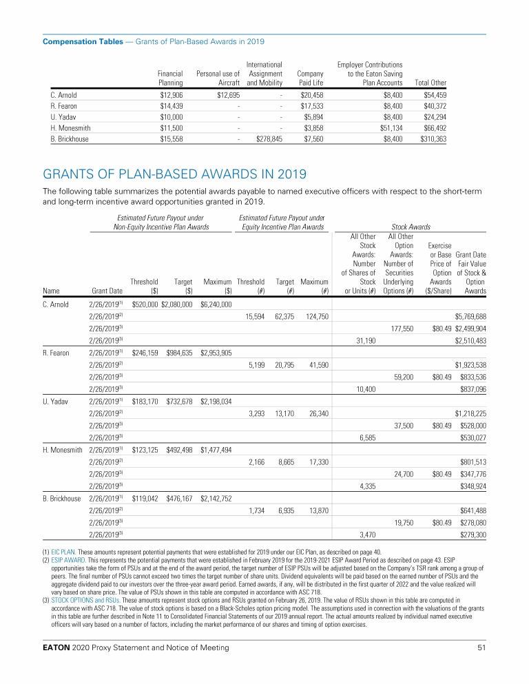 Compensation Tables