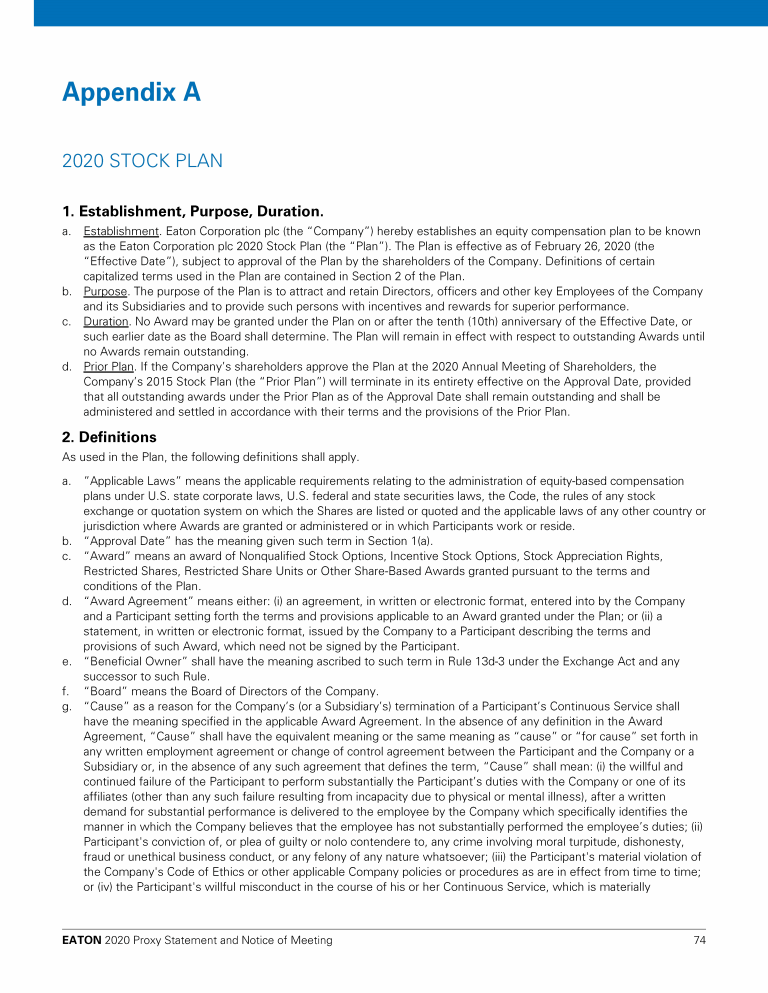 Appendix A - 2020 Stock Plan