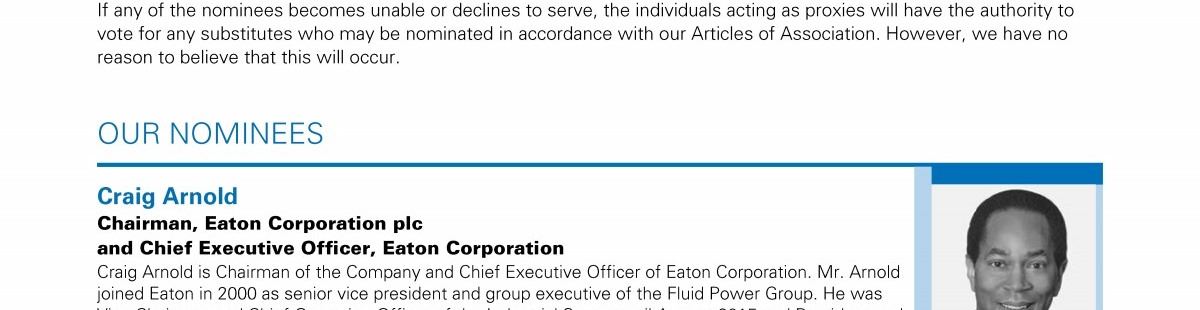 Notice of Eaton Corporation plc's Annual General Meeting