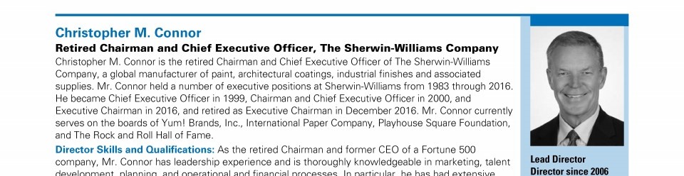 Review our director nominees' biographies, skills/qualifications, committees, and more in our interactive