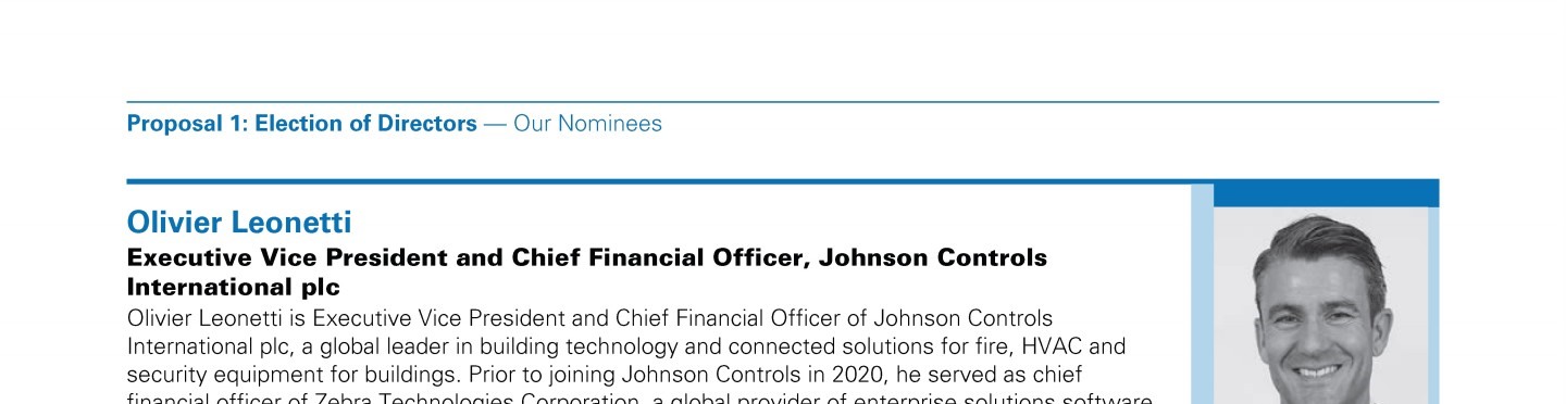 Review our director nominees' biographies, skills/qualifications, committees, and more in our interactive