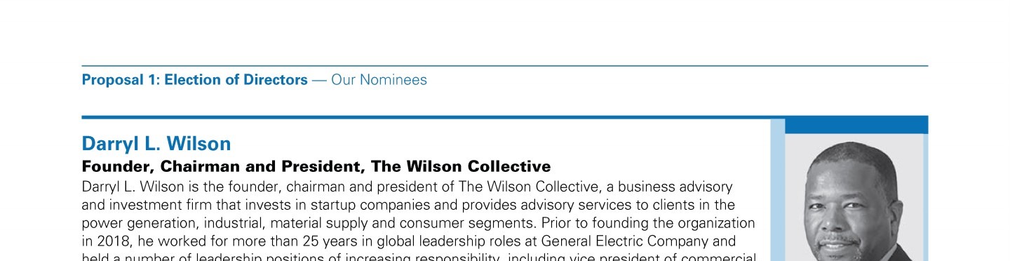 Review our director nominees' biographies, skills/qualifications, committees, and more in our interactive