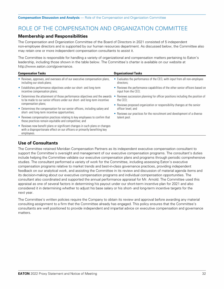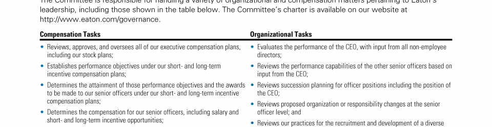 - Role of the Compensation and Organization Committee