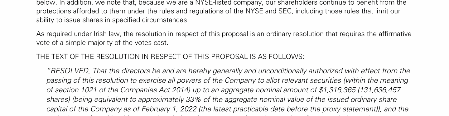 Proposal 7: Approving a Capitalization and Related Capital Reduction to Create Distributable Reserves under Irish Law