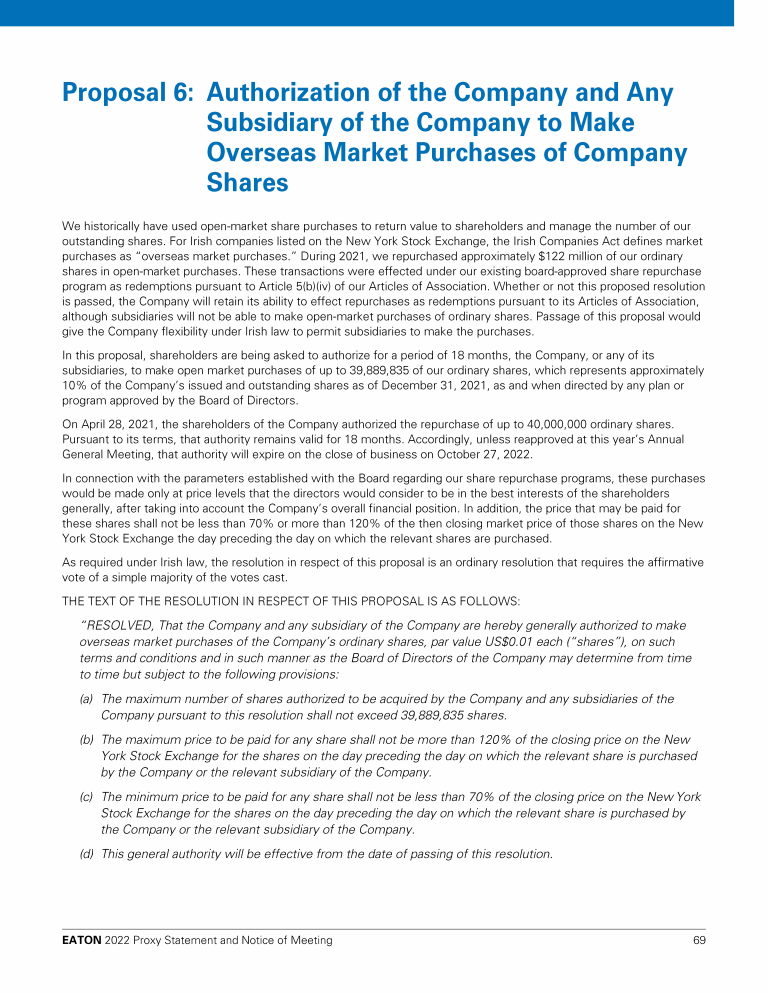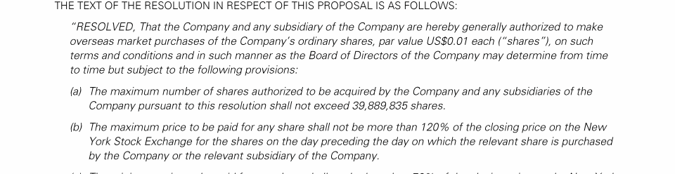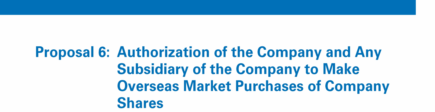 Proposal 6: Authorization of the Company and Any Subsidiary of the Company to Make Overseas Market Purchases of Company Shares