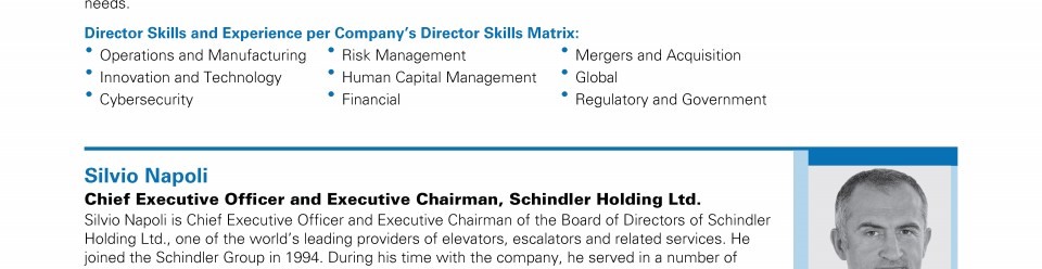 Review our director nominees' biographies, skills/qualifications, committees, and more in our interactive