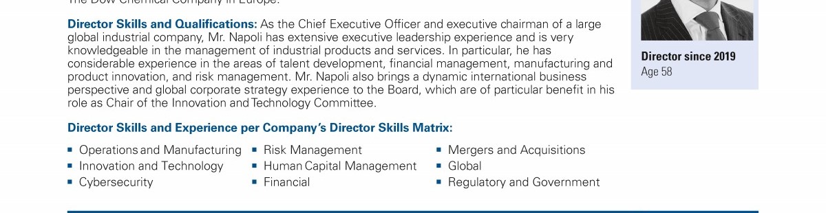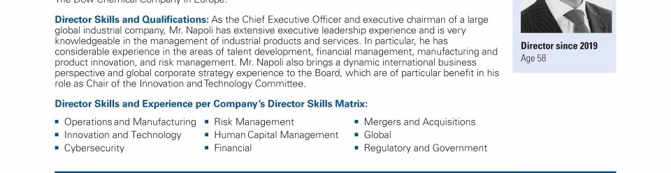 Review our director nominees' biographies, skills/qualifications, committees, and more in our interactive