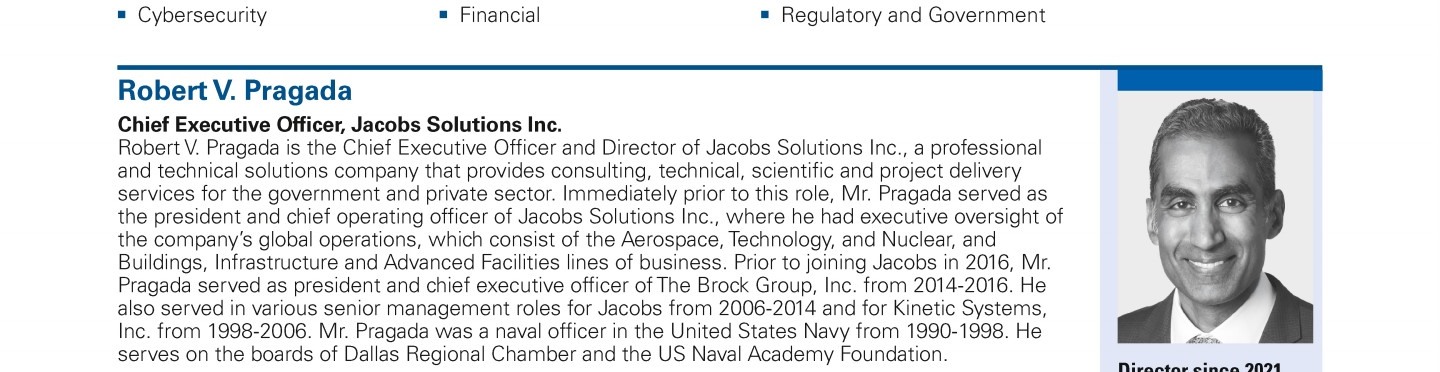 Review our director nominees' biographies, skills/qualifications, committees, and more in our interactive