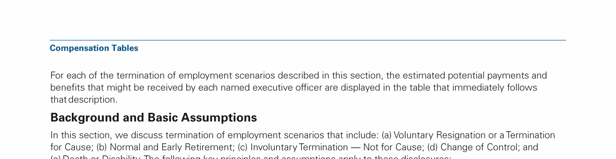 Executive Compensation Table of Contents