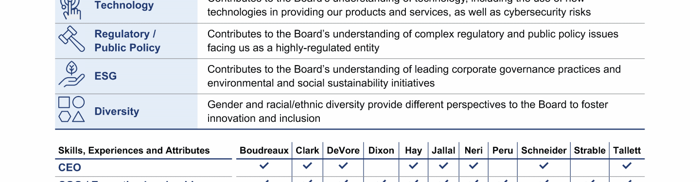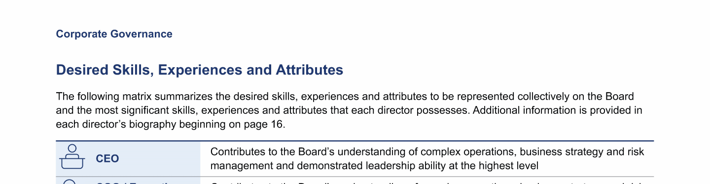 Review our directors' biographies, skills/qualifications, committees, and more in our interactive