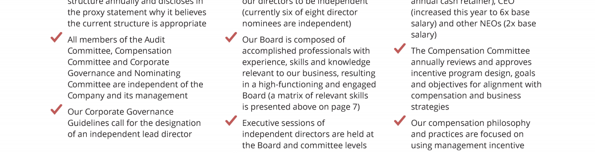 - 2020 Stockholder Outreach