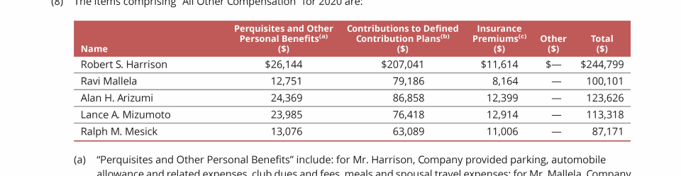 - 2020 Compensation Summary